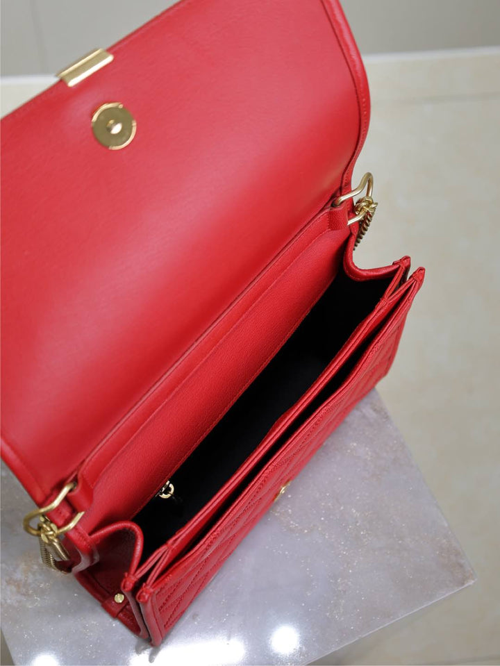BECKY 25 IN RED QUILTED LAMBSKIN GOLD HARDWARE