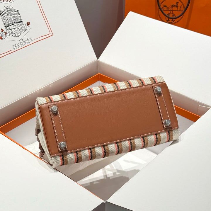 BIRKIN SHOULDER 29 IN GOLD CALFSKIN ÉCRU/BEIGE/FAUVE/ROSE POP/NOIR EMBROIDERY CANVAS