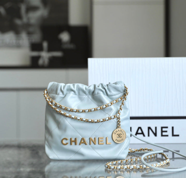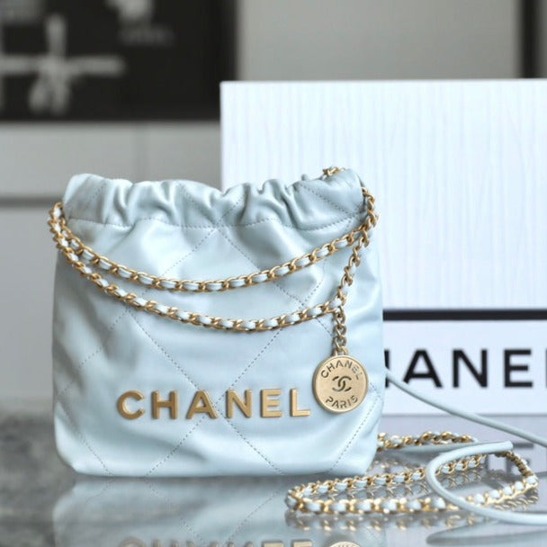 - Color: Lighr Blue, Gold hardware