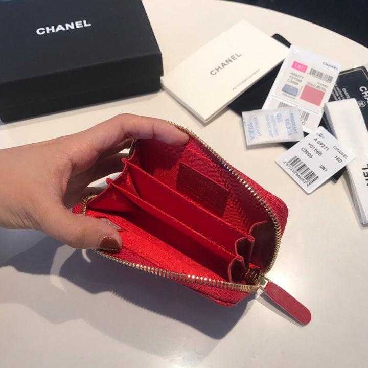CC ZIPPED COIN BASIC PURSE 11 RED CALFSKIN GOLD ICON
