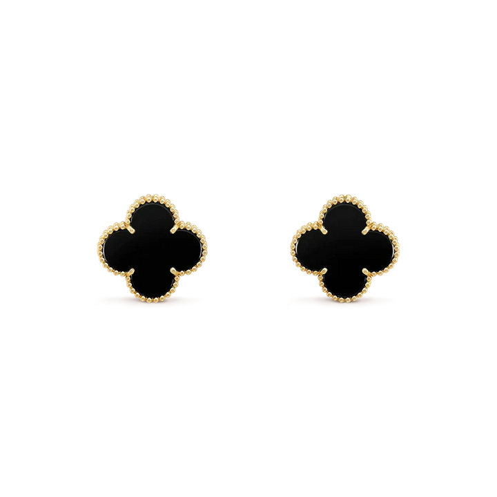 ˇMagic JewelryˇCLOVER MEDIUM 1 MOTIFS ONYX STUD EARRINGS