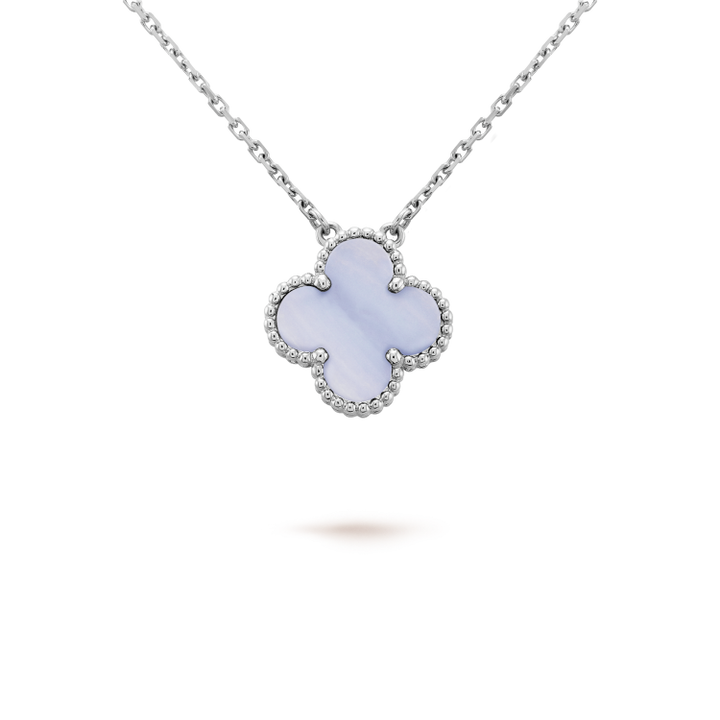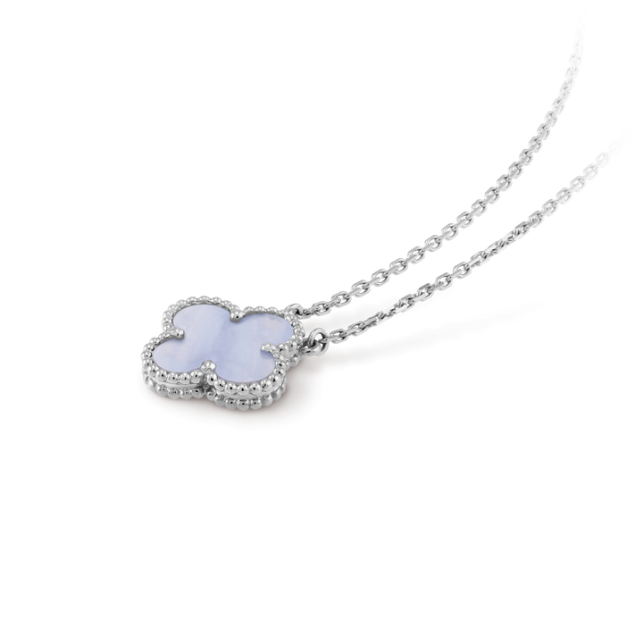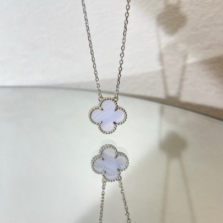 ˇMagic JewelryˇCLOVER 15MM BLUE CHALCEDONY NECKLACE SILVER