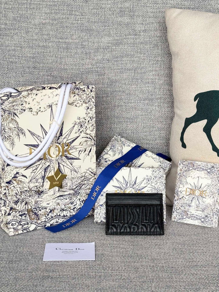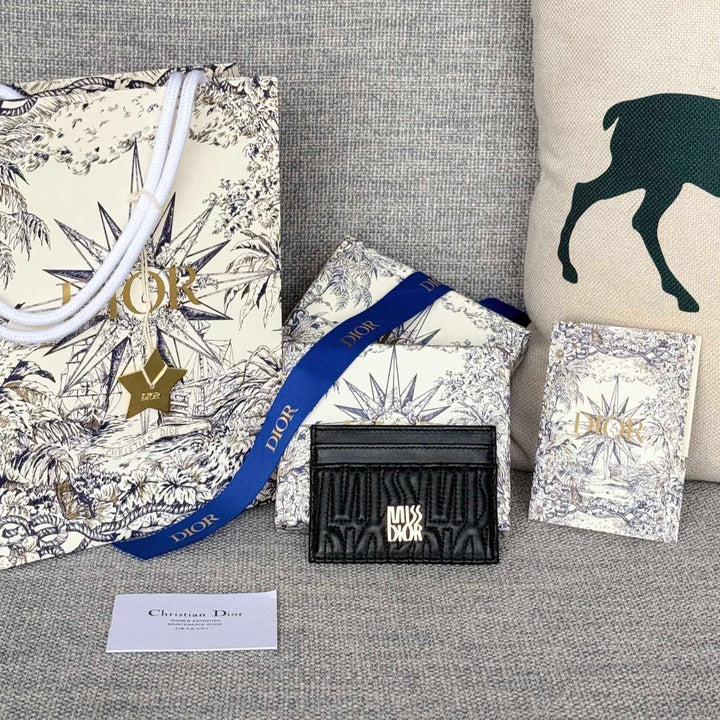 FREESIA CARD HOLDER 10 IN BLACK QUILTED ALLOVER CALFSKIN