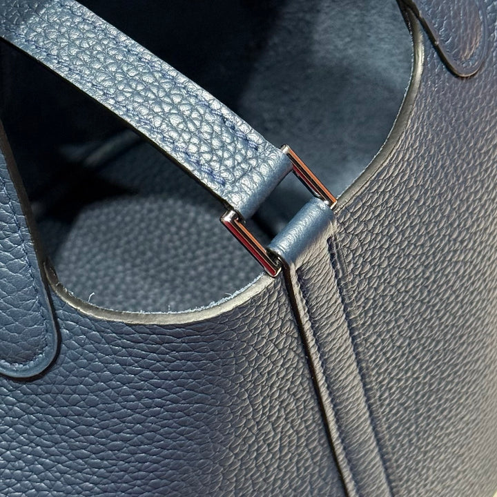 HERMES 25S PICOTIN LOCK 18 IN NAVY BLUE CALFSKIN SILVER HARDWARE