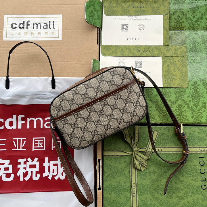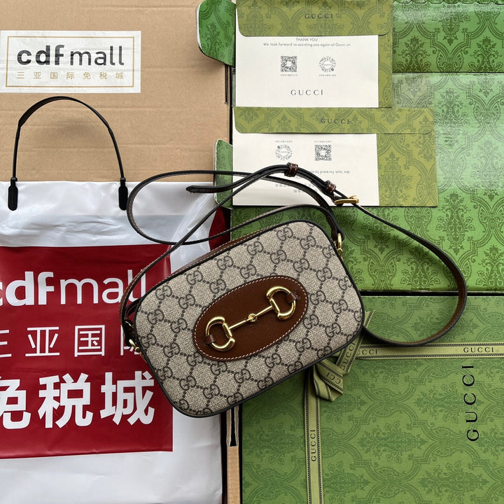 HORSEBIT 1955 SMALL CAMERA BAG 20 IN BEIGE AND EBONY GG BROWN CALFSKIN