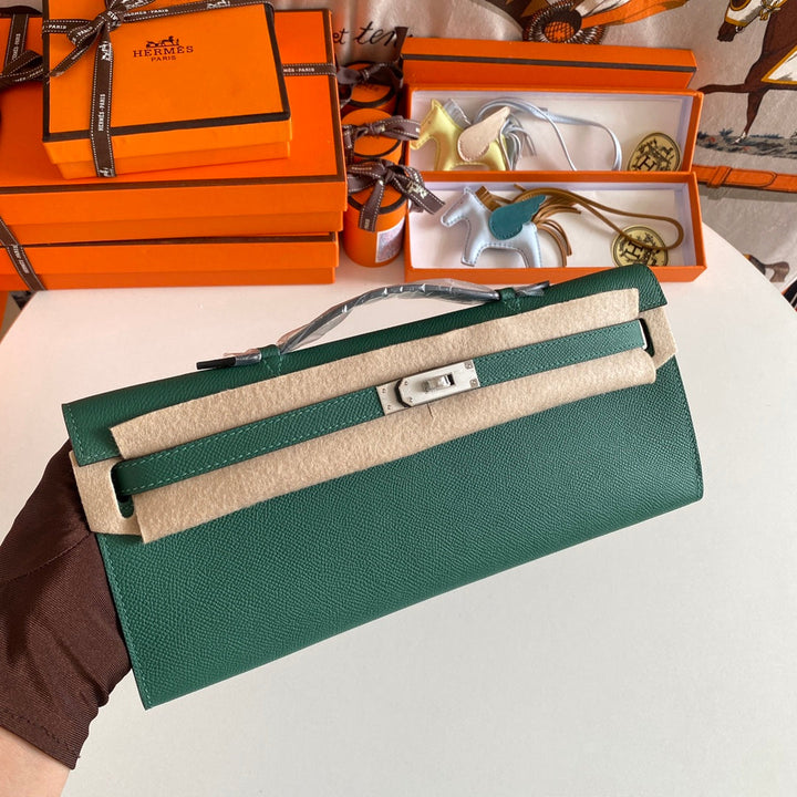 KELLY CUT 31 IN GREEN FOREST CALFSKIN WITH SILVER HARDWARE