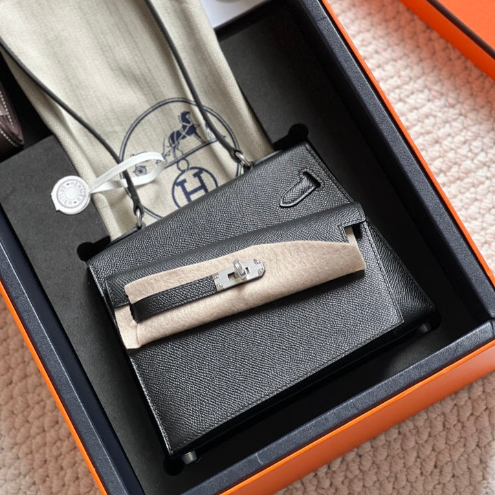 KELLY DESORDRE 20 IN BLACK EPSOM LEATHER WITH SILVER HARDWARE