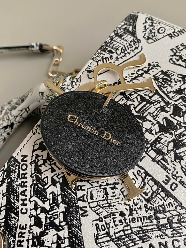 MEDIUM D-JOY 26 BAG IN BLACK WHITE CALFSKIN