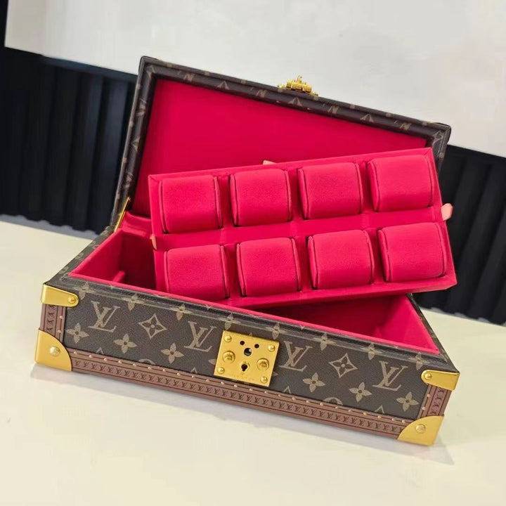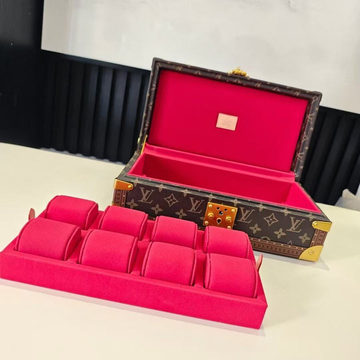 ?This Coffret 8 Montres hardside case features the brand's classic Monogram pattern. Its simple design exudes elegance and securely accommodates your collection of watches.