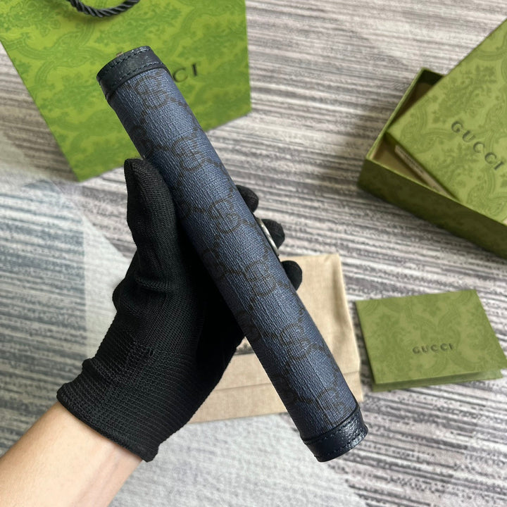 OPHIDIA GG 19 ZIP AROUND WALLET DARK BLUE CANVAS AND BLACK CALFSKIN
