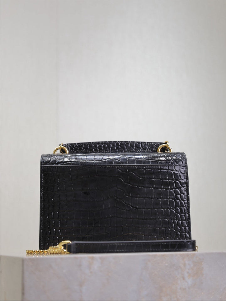 SUNSET SMALL BAG 19 IN BLACK CROCODILE-EMBOSSED CALFSKIN COPPER HARDWARE