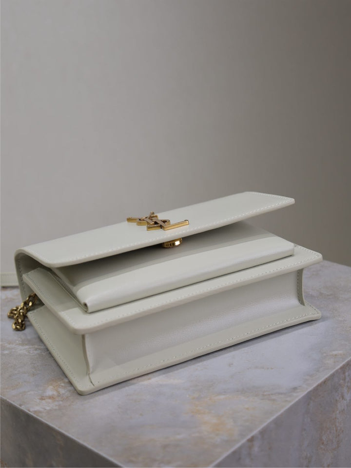 SUNSET SMALL BAG 19 IN WHITE CALFSKIN GOLD HARDWARE