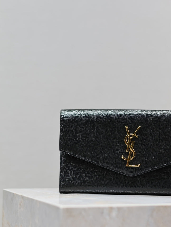 UPTOWN WALLET 21 IN BLACK CALFSKIN GOLD LOGO